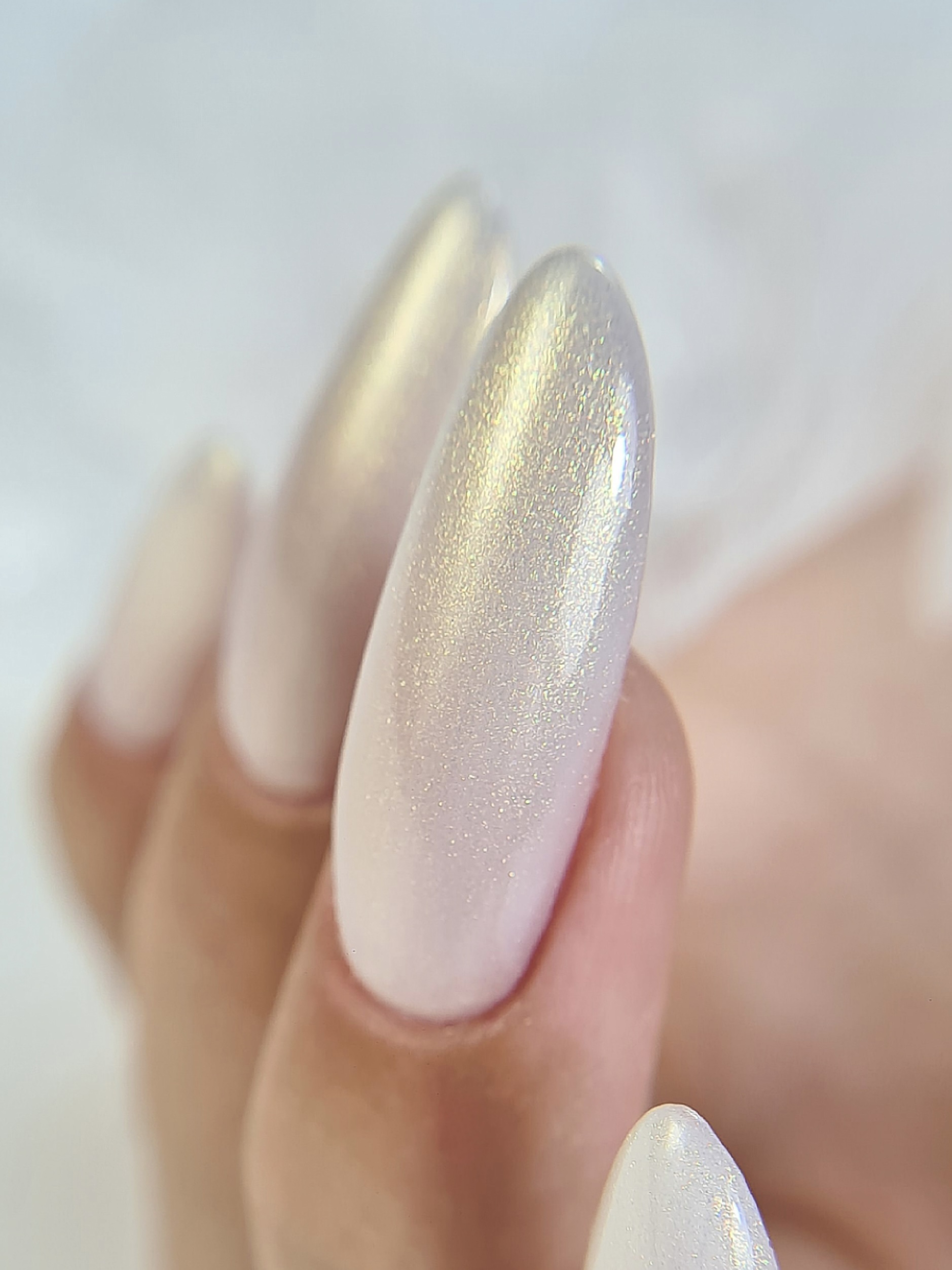 Идеально гладкий шиммер, подобный дорогой вуали, подчёркивает природную нежность пастельных тонов.